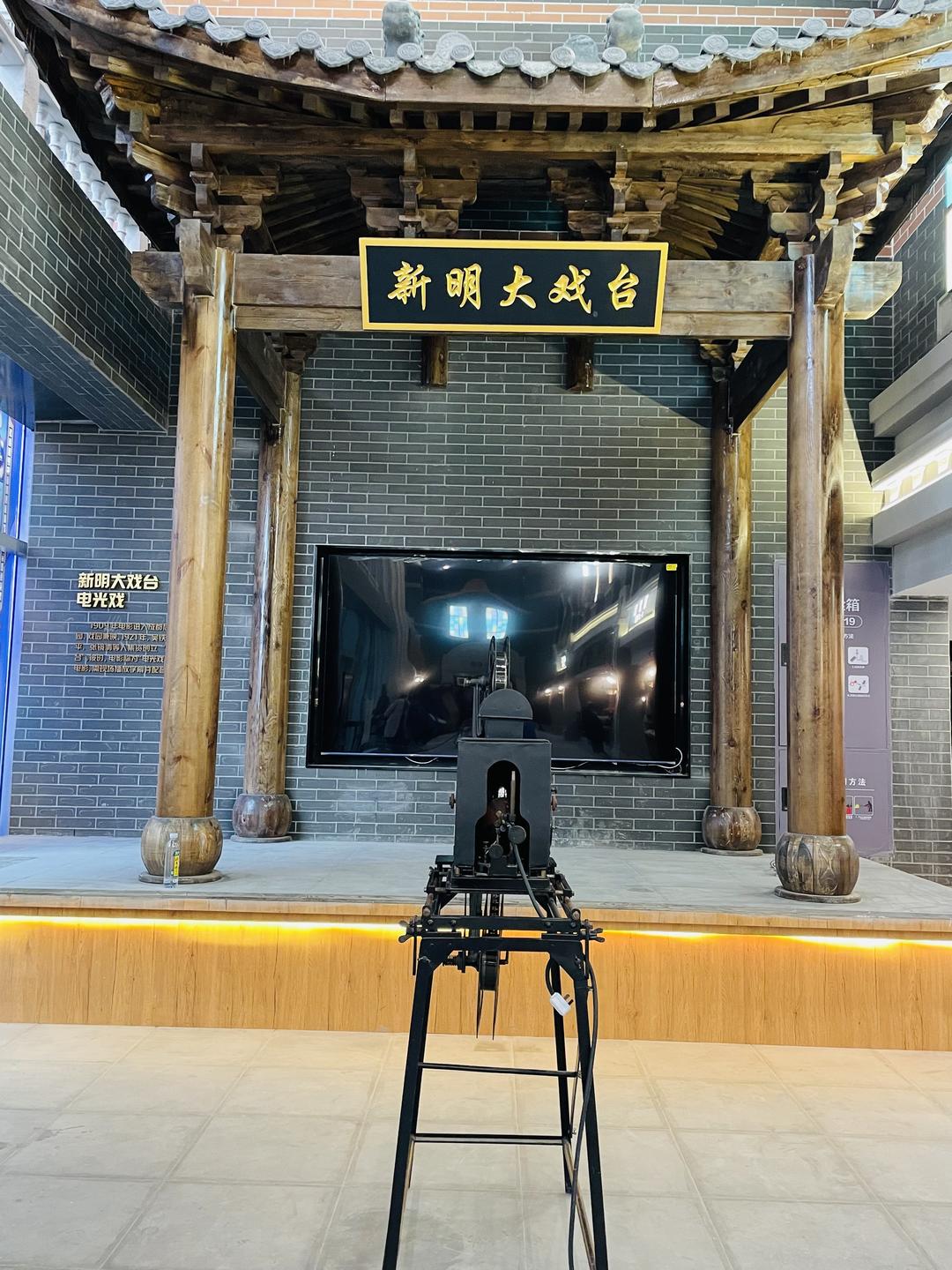 除了展出大量史料,復(fù)業(yè)后的新明電影院在影院設(shè)計(jì)上,也承襲了“老”新明電影院的元素。影院設(shè)立了“新明大戲臺(tái)”,而1924年新明電影院開業(yè)時(shí)使用的同款放映機(jī)也格外醒目。
